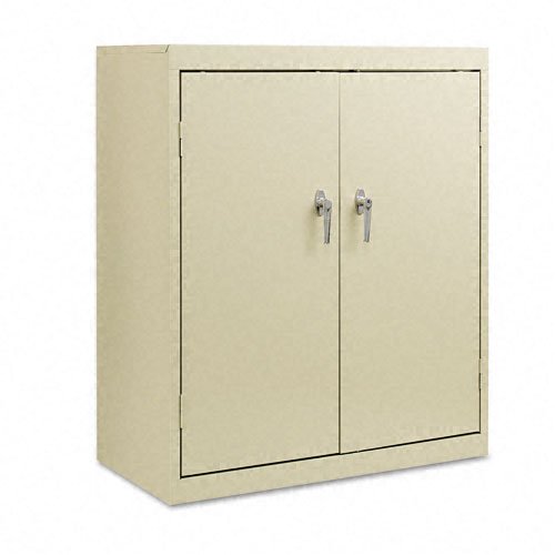 42-Inch high assembled storage cabinet with three-point locking bar system locks top, bottom and doors Doors open 180-Degree for easy access to contents Cabinet made of industrial grade steel with enamel finish and satin chrome double handles Unit has two adjustable shelves Width: 36-Inch Depth: 18-Inch Height: 42-Inch Maximum Height: